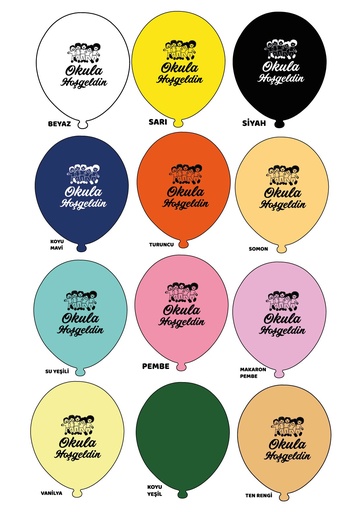 12" Okula Hoşgeldin 1+1 - 100 Adet