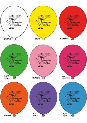 12" Sünnetime Hoşgeldiniz Baskılı Balon Karışık 1+1 - 100 Adet