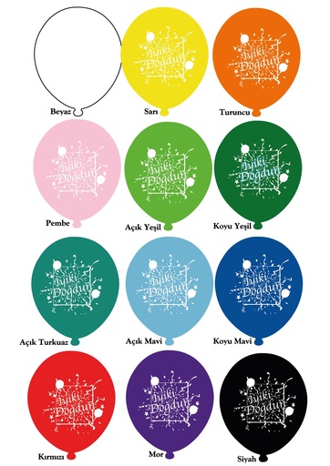 12" İyi Ki Doğdun Baskılı Balon Karışık 1+1 - 100 Adet