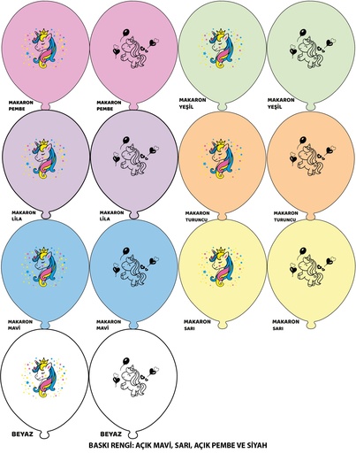 12'' Unicorn Baskılı Balon 4+1 - 100 Adet