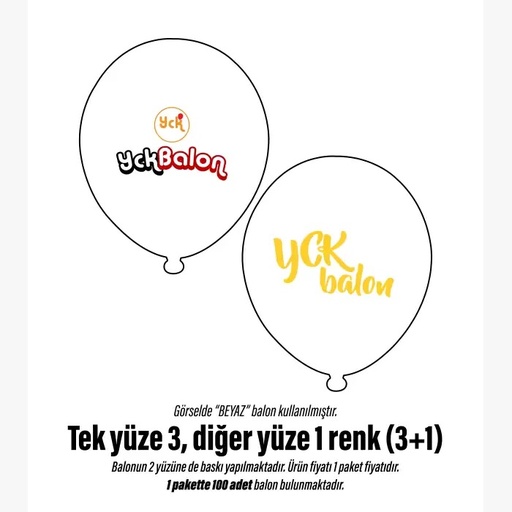 TEK YÜZE ÜÇ DİĞER YÜZE TEK RENK BASKILI BALON 3+1