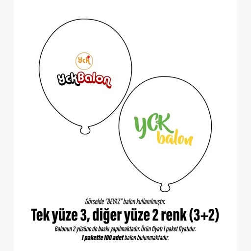 TEK YÜZE ÜÇ DİĞER YÜZE İKİ RENK BASKILI BALON 3+2
